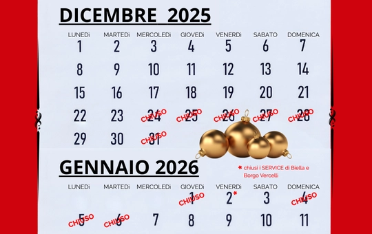 Durante le festività i nostri orari subiranno alcune variazioni